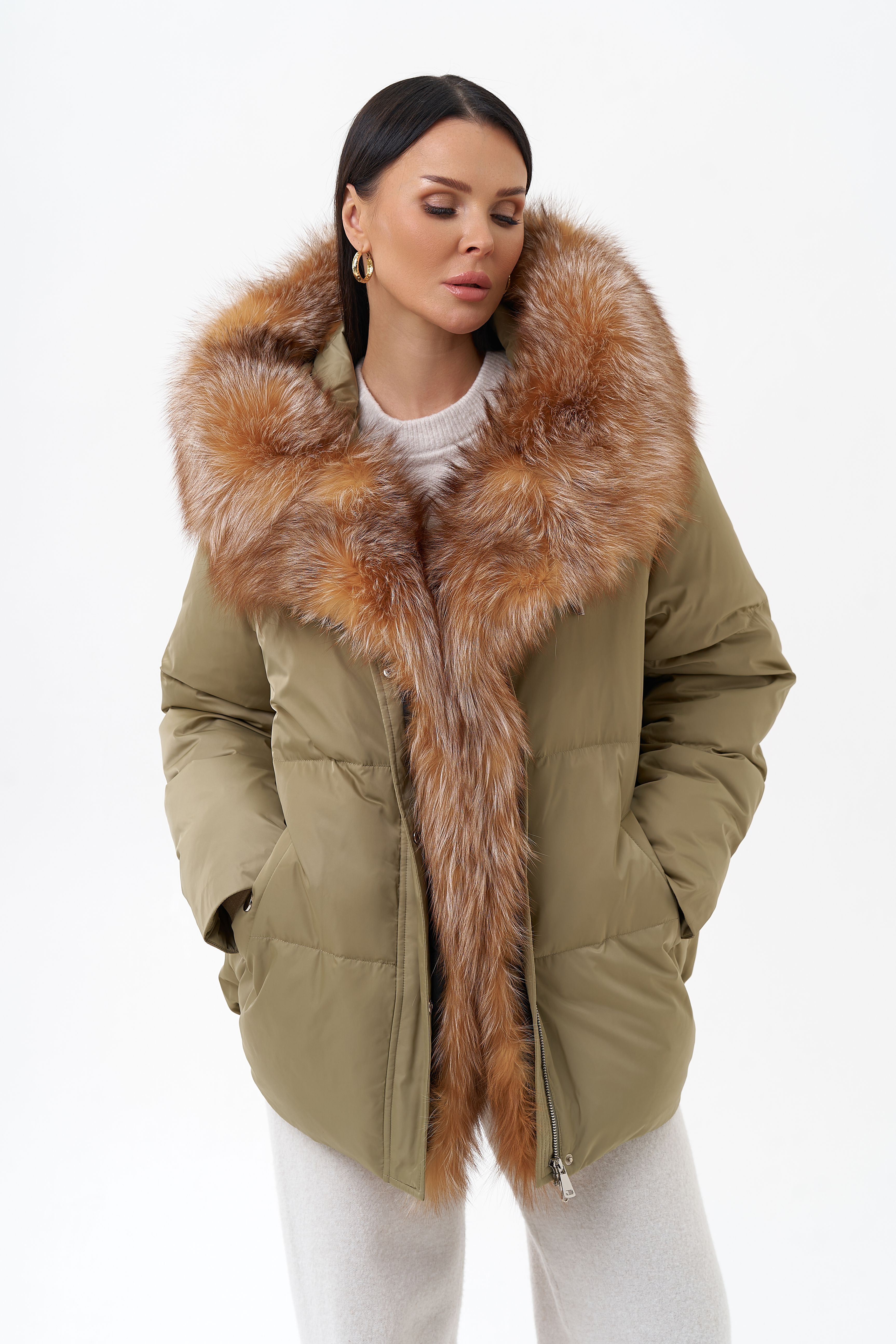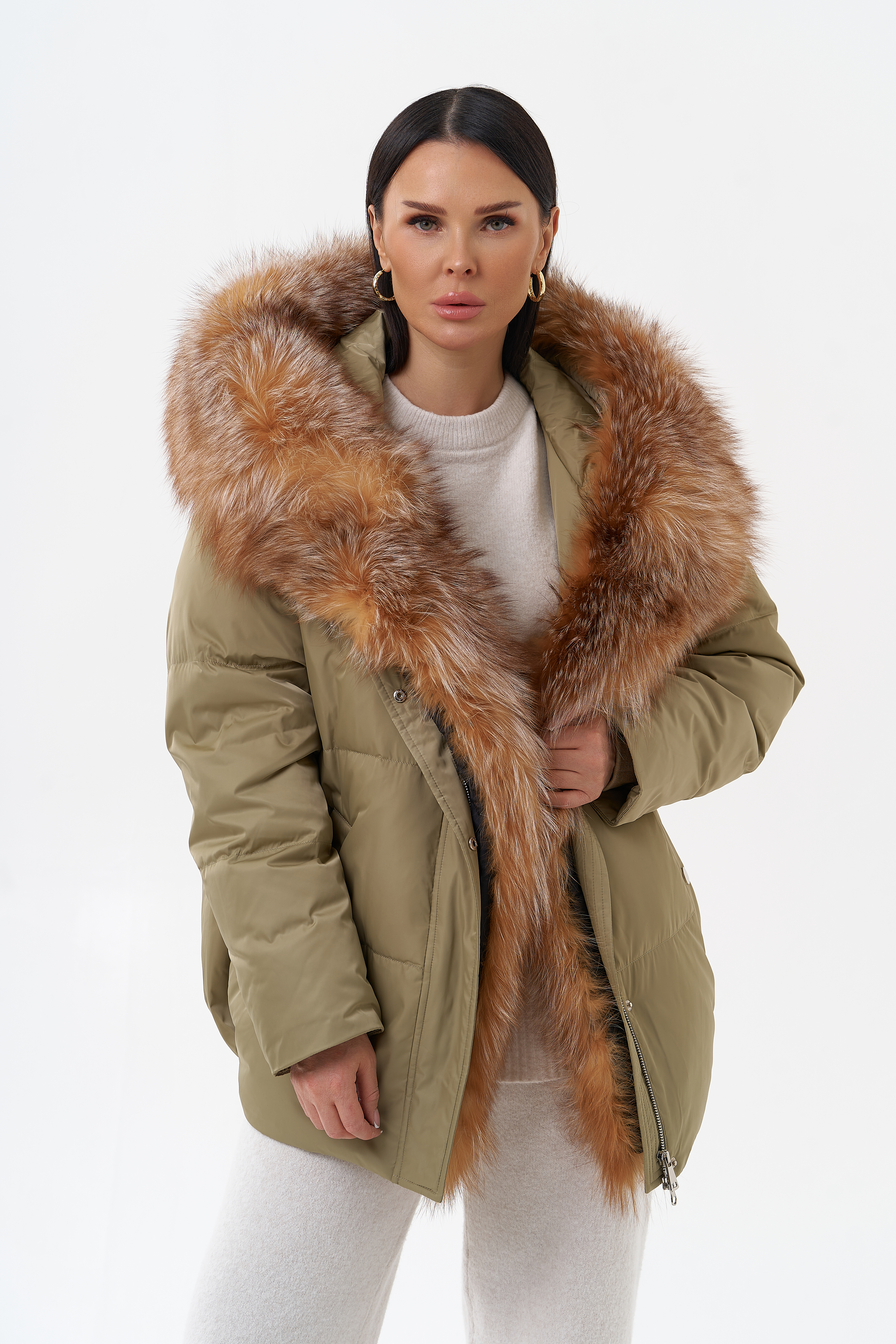 Крой воротника - капюшон, отделка лиса