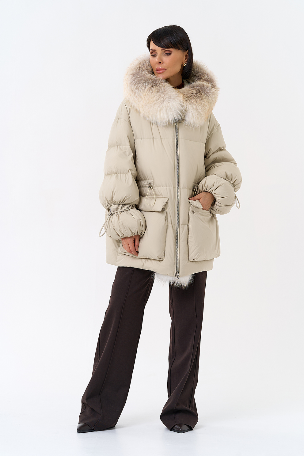 Крой воротника - капюшон, отделка лиса