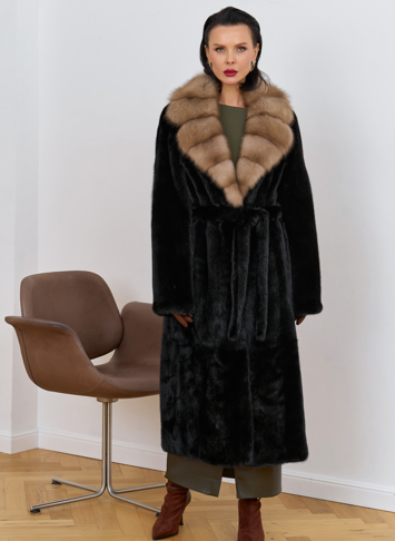 Тип ворота - английский воротник, отделка мех куницы